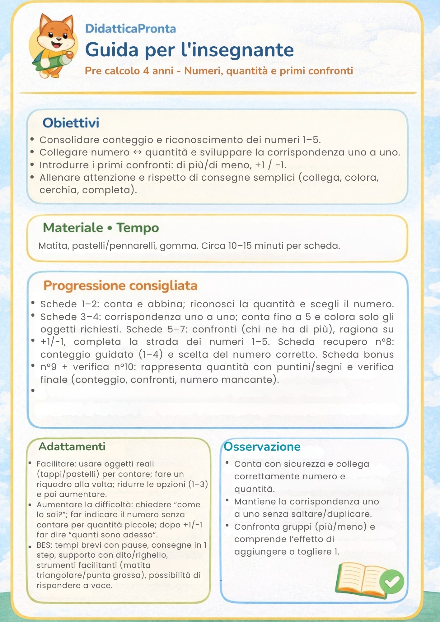 Pre-calcolo 4 anni – Numeri, quantità e primi confronti
